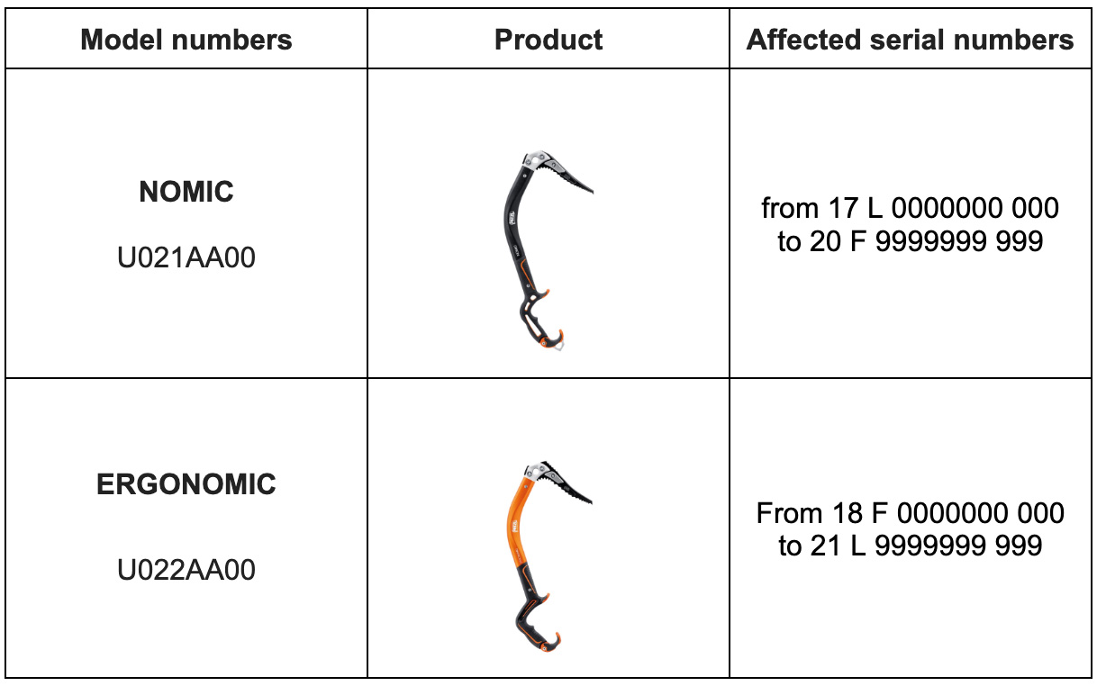 Saznali smo za nekoliko slučajeva loma cepina na dršci, što bi moglo predstavljati rizik od ozbiljnih povreda ili smrti.