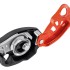 • Blokiranje uz pomoć ekscentra za udobnije osiguranje: kada penjač padne ili utegne sistem, uže se zateže, točak prestaje da se okreće, a gredica se okreće kako bi stegnula i blokirala uže